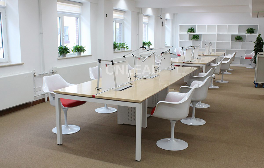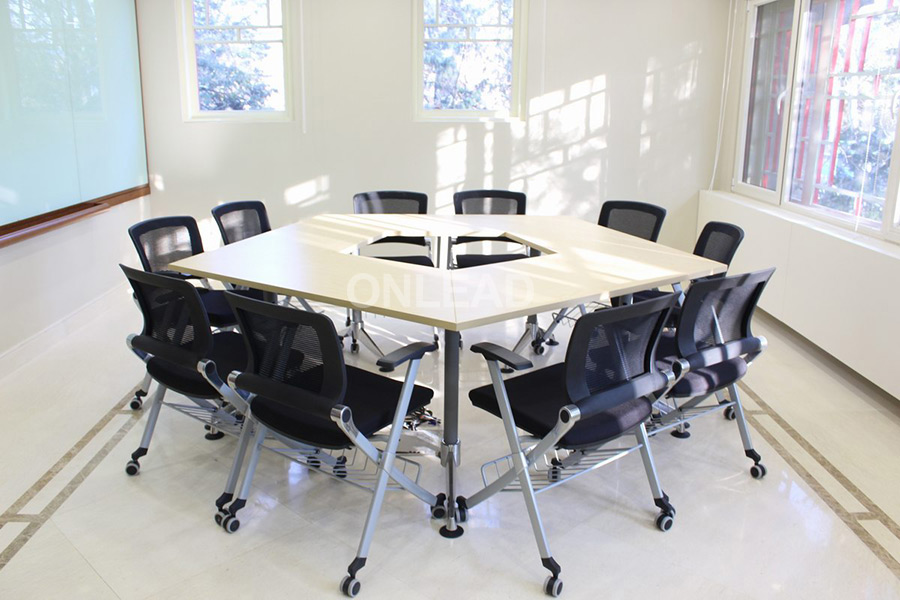 空间界面色彩要求搭配和谐、色调淡雅,更好的为读者营造了舒适和谐的氛围。培训桌可以实现灵活组合,环形、长条形、口子型均已满足工作和学习需求进行调整。培训椅配置书网,可用来放置书包和水瓶,扩展存储空间,提高桌面空间利用率。
